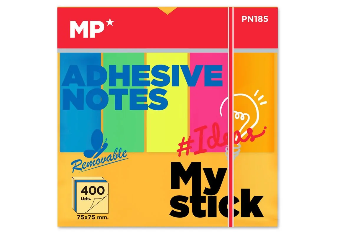 MP αυτοκόλλητα χαρτάκια σημειώσεων PN185 75x75mm, 400+100τμχ, χρωματιστά