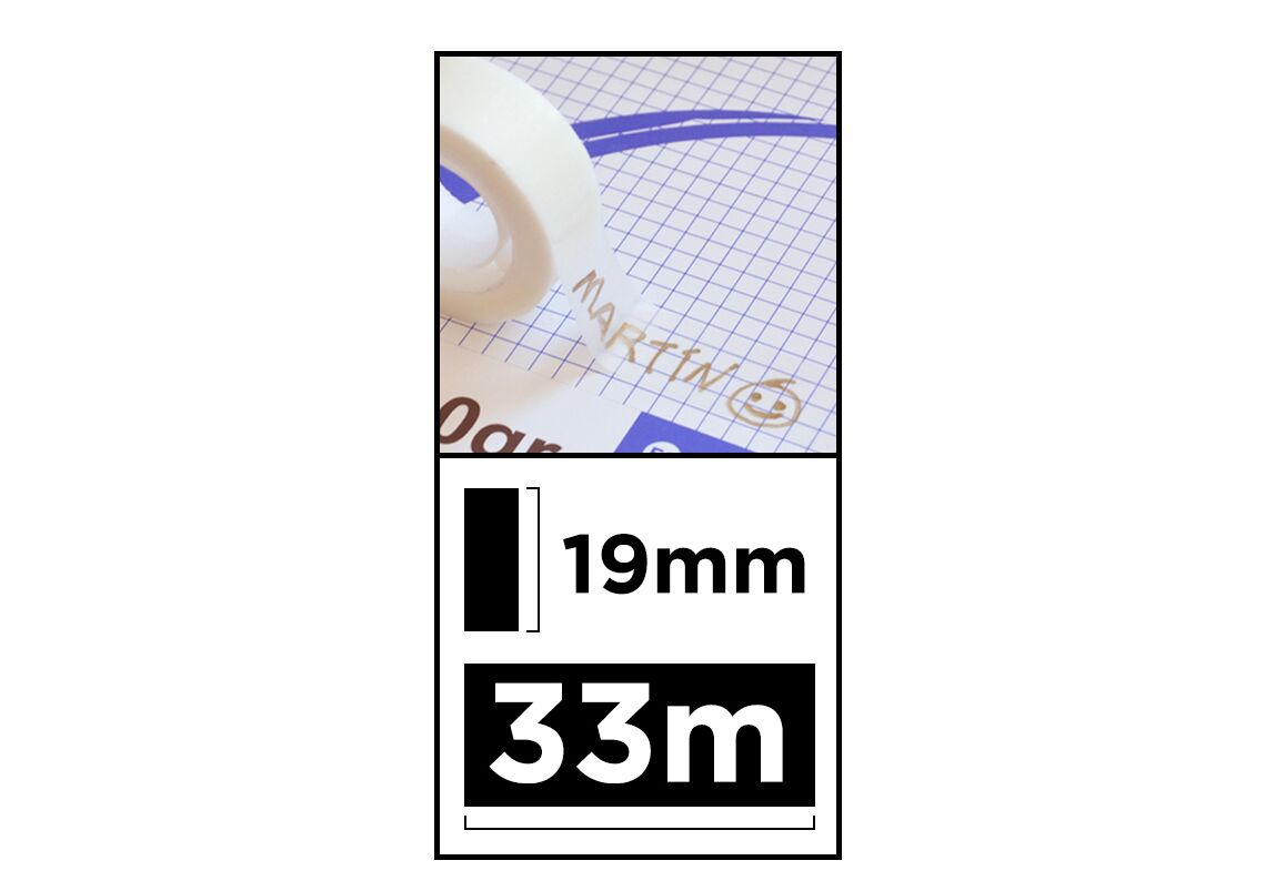 Διάφανη κολλητική ταινία με πλάτος 19 χιλιοστά και δυνατότητα γραφής με στυλό, μολύβι ή μαρκαδόρο. Είναι σχεδόν αόρατη για να επιδιορθώνει διακριτικά και δεν εμφανίζεται στα φωτοαντίγραφα. Αφαιρείται εύκολα από οποιαδήποτε στέρεα επιφάνεια, χωρίς να αφήνει κατάλοιπα.
