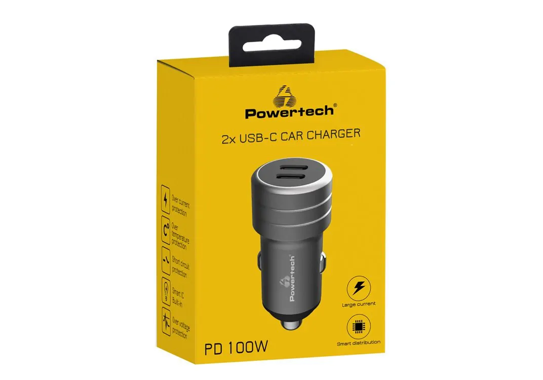Υψηλής απόδοσης φορτιστής αυτοκινήτου της Powertech, συμβατός με συσκευές που φορτίζουν μέσω θύρας USB-C.