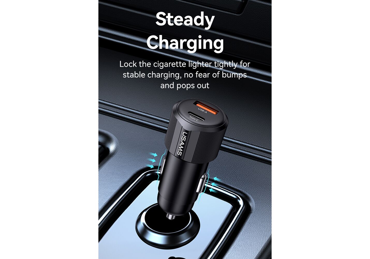 Υψηλής απόδοσης φορτιστής αυτοκινήτου της Usams, κατασκευασμένος από ανθεκτικό υλικό και συμβατός με συσκευές που φορτίζουν μέσω θύρας USB.