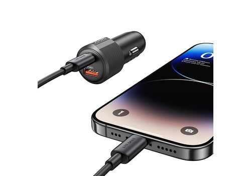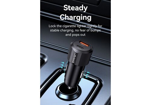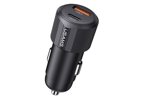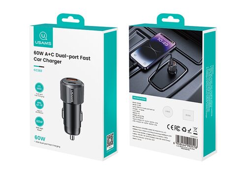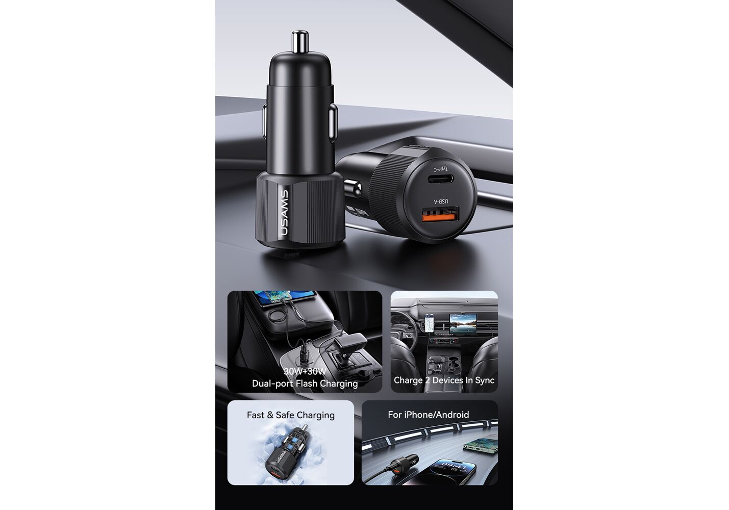 USAMS φορτιστής αυτοκινήτου CC283, USB & USB-C, 60W, μαύρος