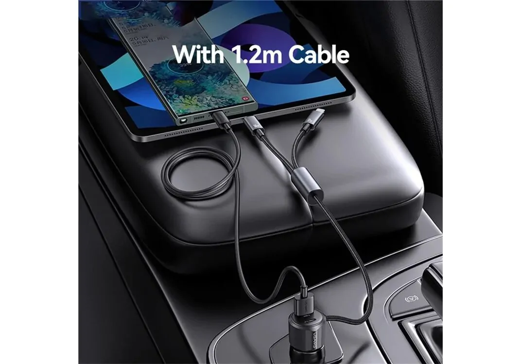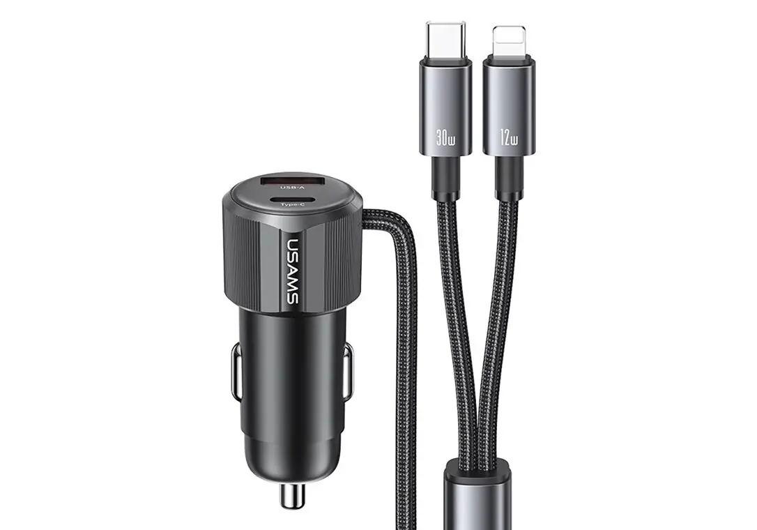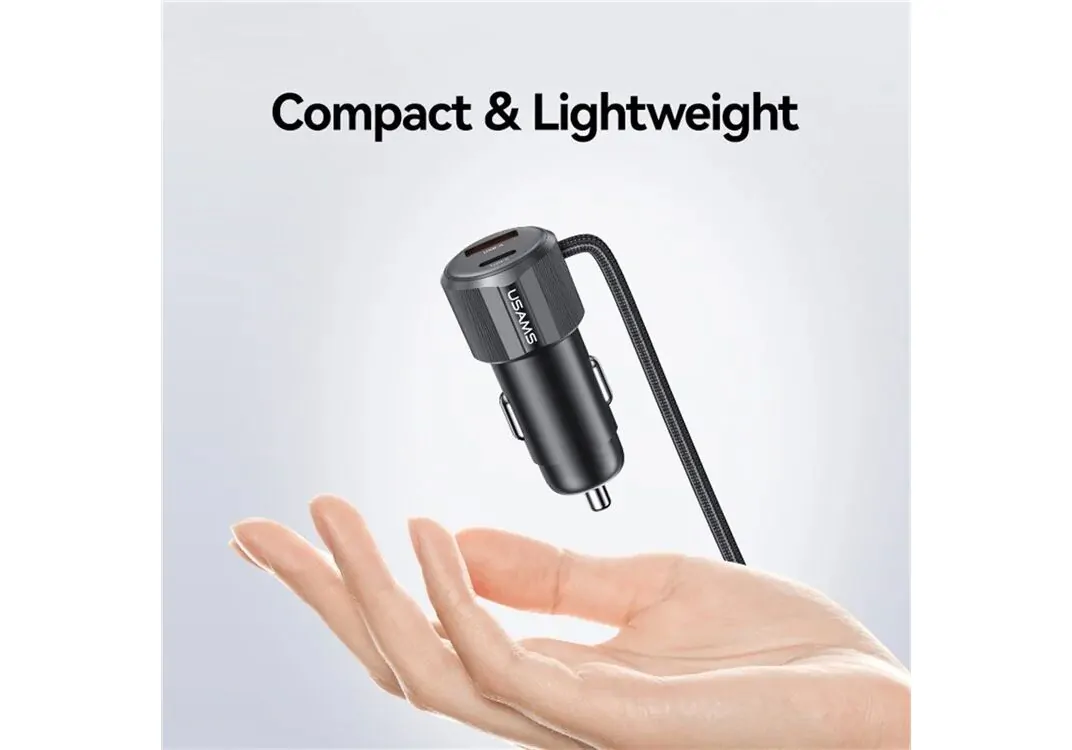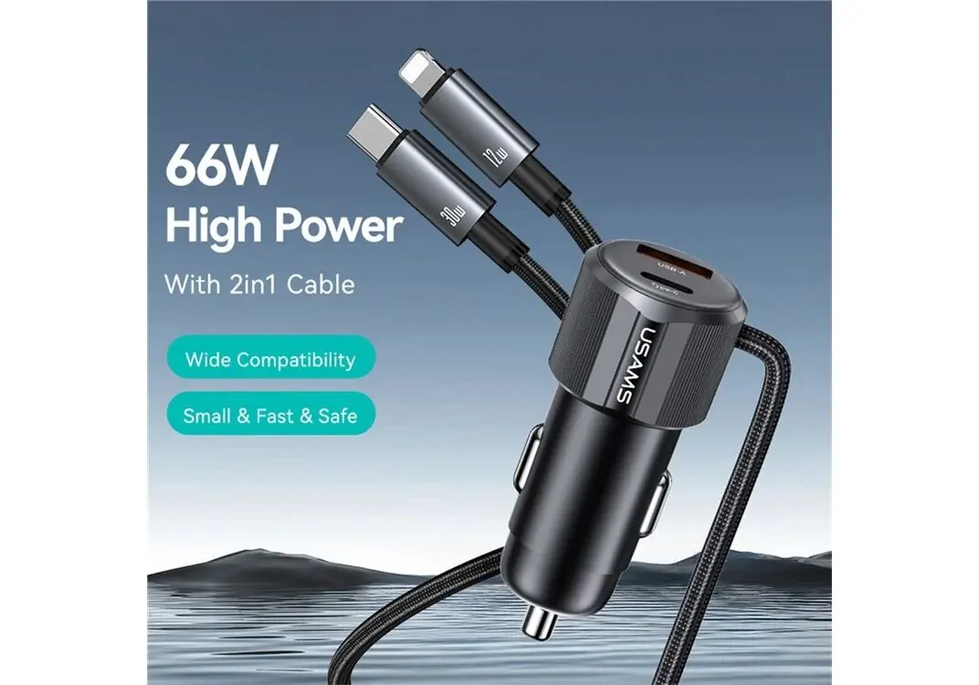 USAMS φορτιστής αυτοκινήτου CC287 με 2 σε 1 καλώδιο, USB/USB-C θύρες, 66W, μαύρος