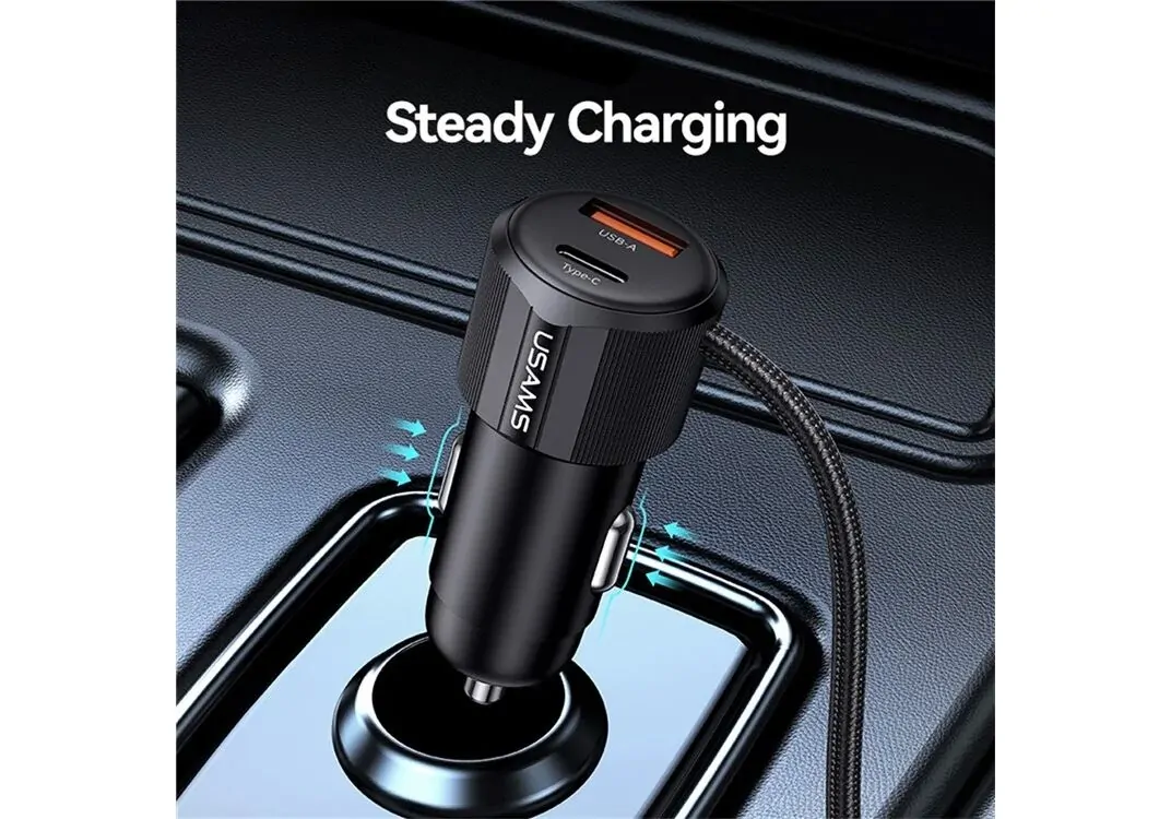 Υψηλής απόδοσης φορτιστής αυτοκινήτου της Usams, κατασκευασμένος από ανθεκτικό υλικό και συμβατός με συσκευές που φορτίζουν μέσω θύρας USB.