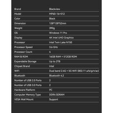 ΚατασκευαστήςBLACKVIEW Λειτουργικό ΣύστημαWindows 11 Pro I/O Ports 2XUSB 3.02xHDMI 1.4b2xUSB 2.01xDC Jack1xRJ451x3.5mm jack
