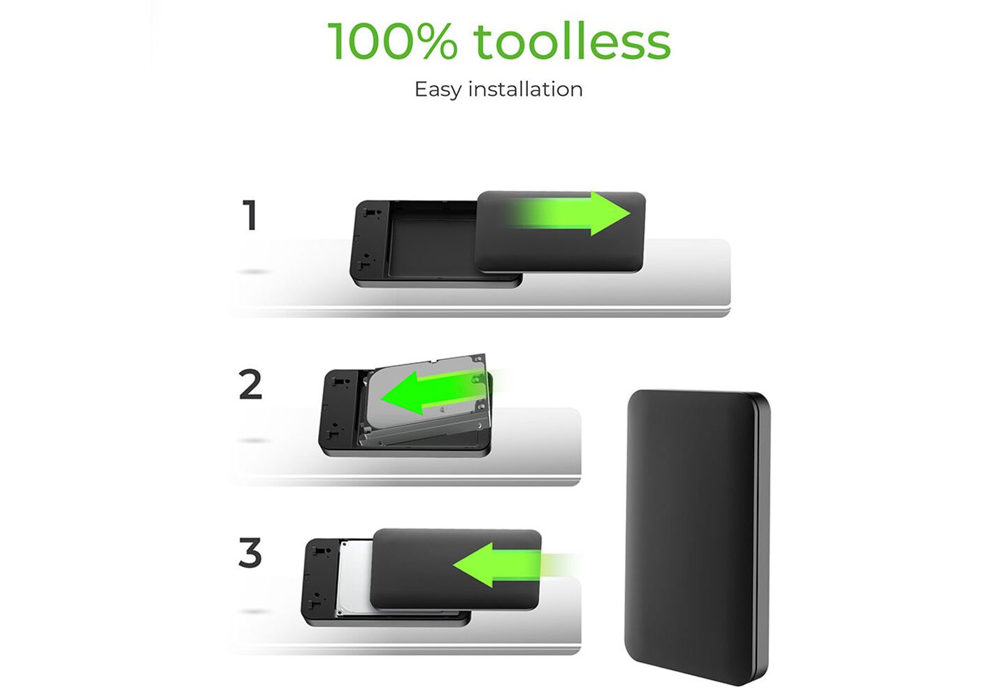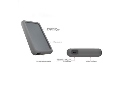 Εξωτερική θήκη για 1x HDD/SSD με Διασύνδεση USB 3.2 Gen 2 και Προστατευτικό ΣιλικόνηςΑσφαλές Περιβλημα 100% toolless :