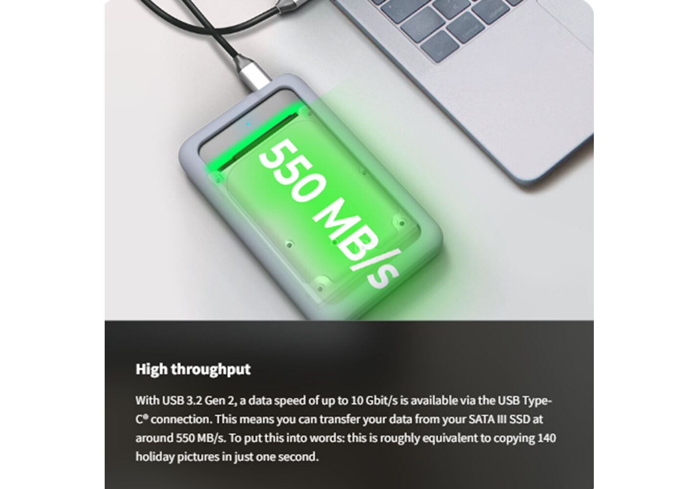Αυτό σημαίνει περίπου 550 MB/s, δηλαδή μπορείτε να αντιγράψετε περίπου 140 φωτογραφίες διακοπών σε μόλις ένα δευτερόλεπτο.