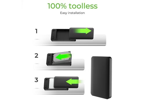 γκατάσταση Χωρίς Εργαλεία: Το IB-246-C31-G διαθέτει αλουμινένιο περίβλημα, όπου ένας σκληρός δίσκος SATA 2.5" μπορεί να εγκατασταθεί χωρίς τη χρήση εργαλείων, προσφέροντας γρήγορη και εύκολη εγκατάσταση οπουδήποτε. SSD ή HDD με ύψος έως 9.5 mm προσαρμόζονται τέλεια.