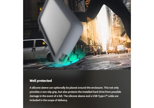 Το επιπλέον κάλυμμα από σιλικόνη παρέχει προστασία από ζημιές σε περίπτωση πτώσης, καθιστώντας τη συσκευή αποθήκευσης ιδανική για ταξίδια.