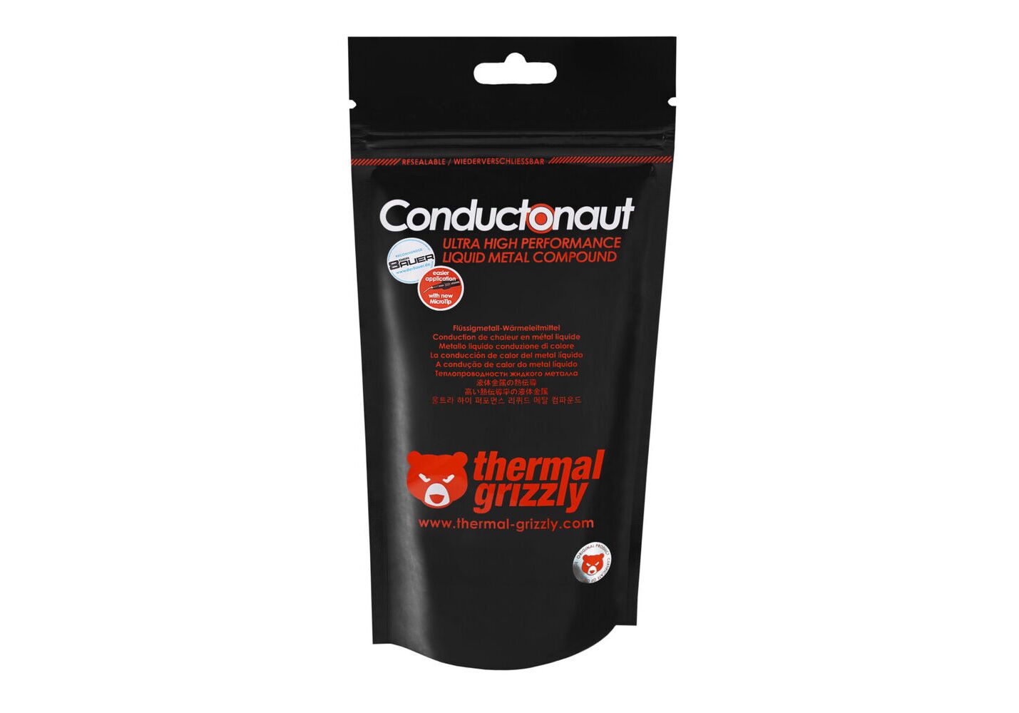 Το Thermal Grizzly Conductonaut είναι μια υγρή μεταλλική θερμική ένωση με βάση ένα ευτηκτικό κράμα. Το ειδικό μας μείγμα μετάλλων όπως κασσίτερος, γάλλιο και ίνδιο, το Conductonaut ξεχωρίζει με πολύ υψηλή θερμική αγωγιμότητα. Συνιστούμε να εφαρμόζετε το Conductonaut σε επινικελωμένες επιφάνειες, καθώς αυτό παρέχει την καλύτερη μακροπρόθεσμη σταθερότητα στην απόδοση.