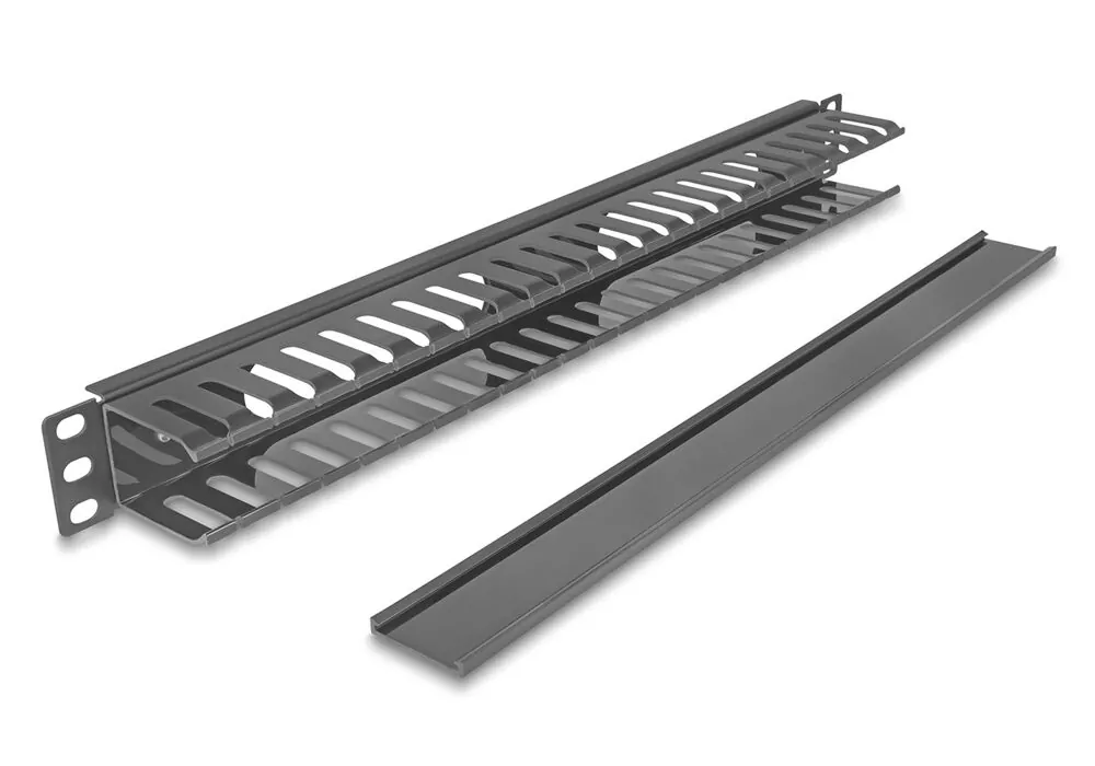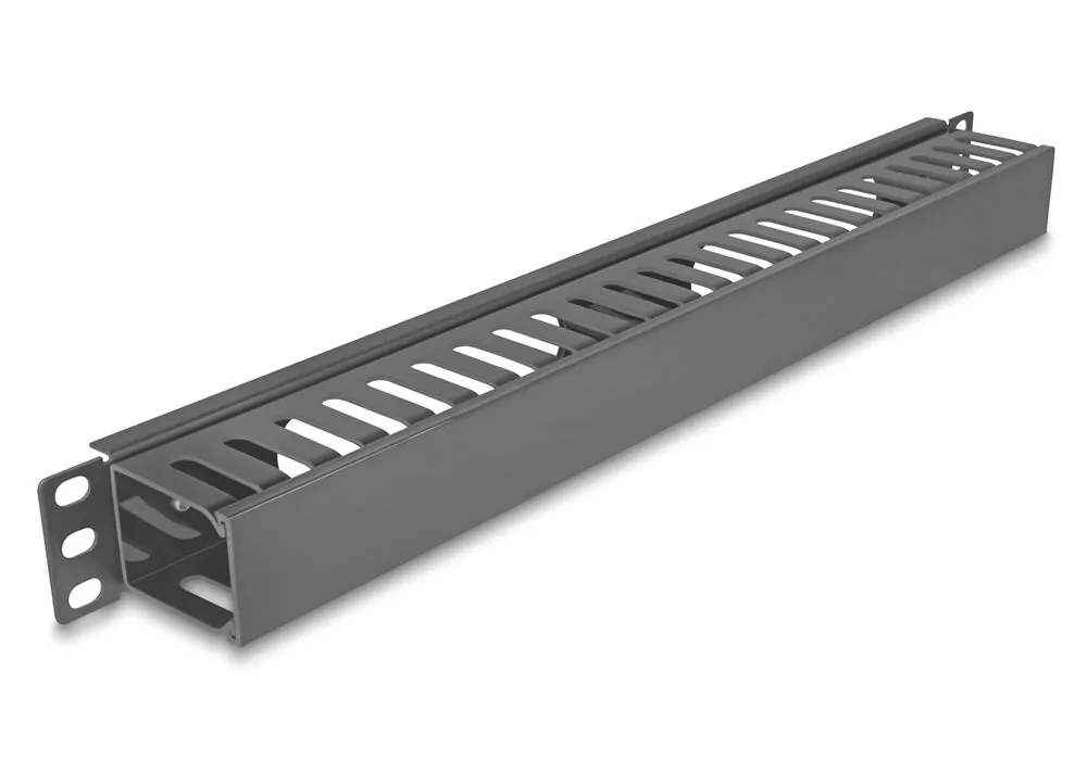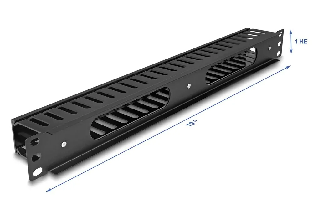Cable management της Delock κατάλληλο για τοποθέτηση σε 19" καμπίνες rack. Διαθέτει ανοίγματα στο πάνω και κάτω μέρος αλλά και 2 μεγάλα ανοίγματα στο πίσω μέρος για να περνούν τα καλώδια.