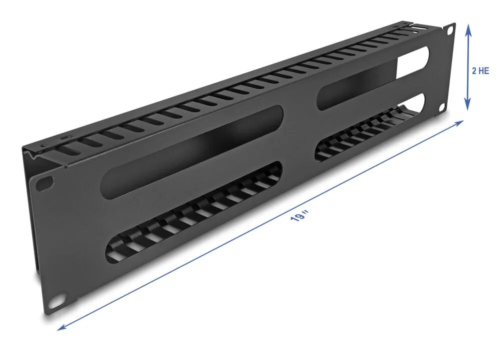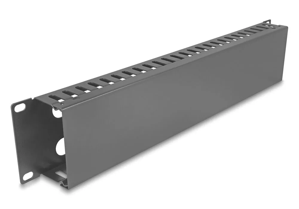 Cable management της Delock κατάλληλο για τοποθέτηση σε 19" καμπίνες rack. Διαθέτει ανοίγματα στο πάνω και κάτω μέρος αλλά και 4 μεγάλα ανοίγματα στο πίσω μέρος για να περνούν τα καλώδια.