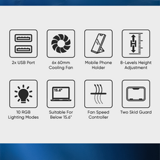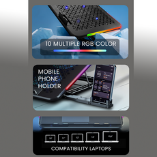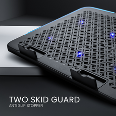 Η γενναιόδωρα διάτρητη επιφάνεια της βάσης επιτρέπει στον φορητό υπολογιστή να παραμένει δροσερός ακόμα και κατά τη διάρκεια μακρών περιόδων λειτουργίας. Εξίσου χρήσιμες είναι οι δύο μεγάλες λωρίδες σιλικόνης στις επάνω και κάτω άκρες, οι οποίες αποτρέπουν αποτελεσματικά την ολίσθηση του φορητού υπολογιστή.