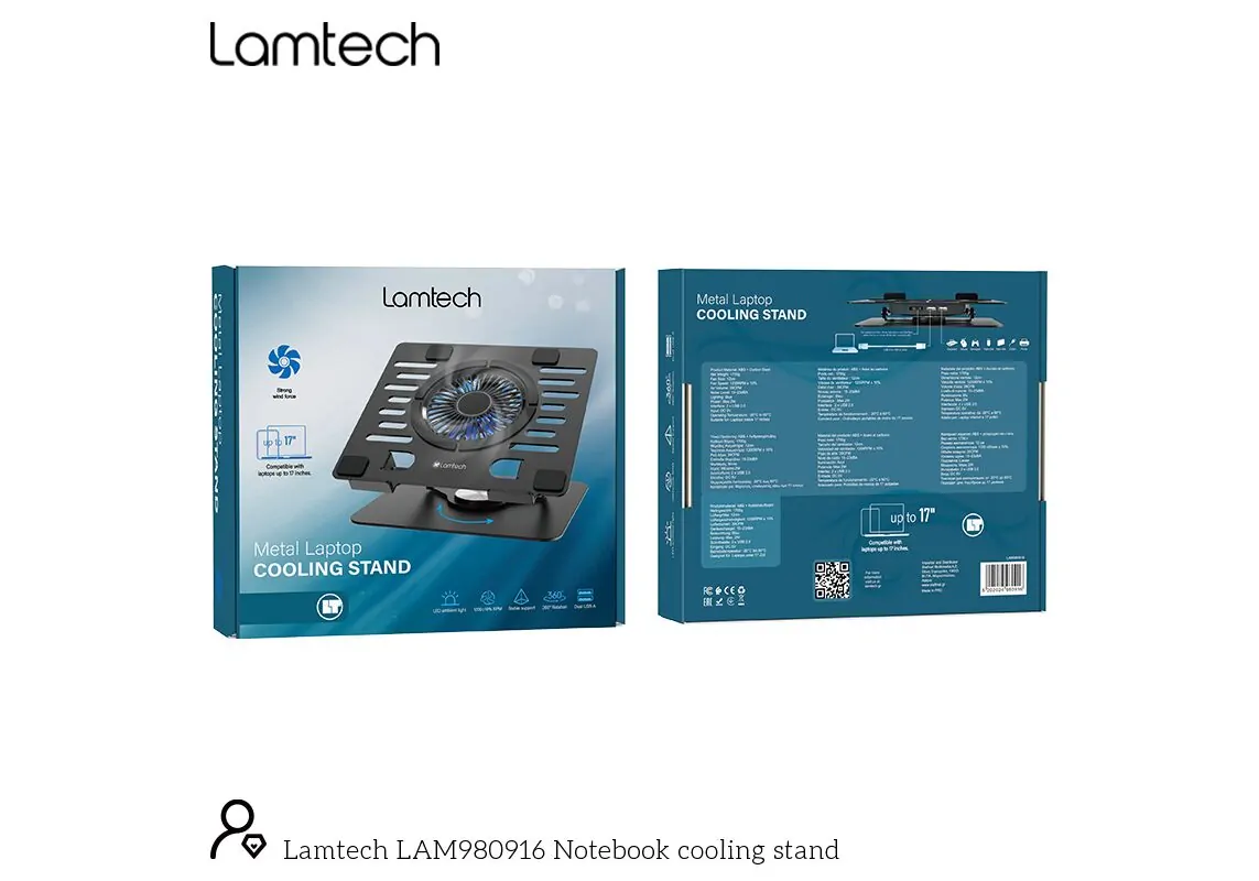 LAMTECH METAL LAPTOP COOLING STAND 17” BLACK