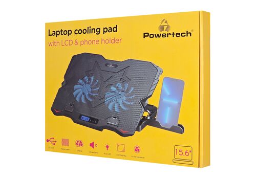 POWERTECH βάση & ψύξη laptop PT-1346, έως 15.6", 2x 125mm LED fan, μαύρη