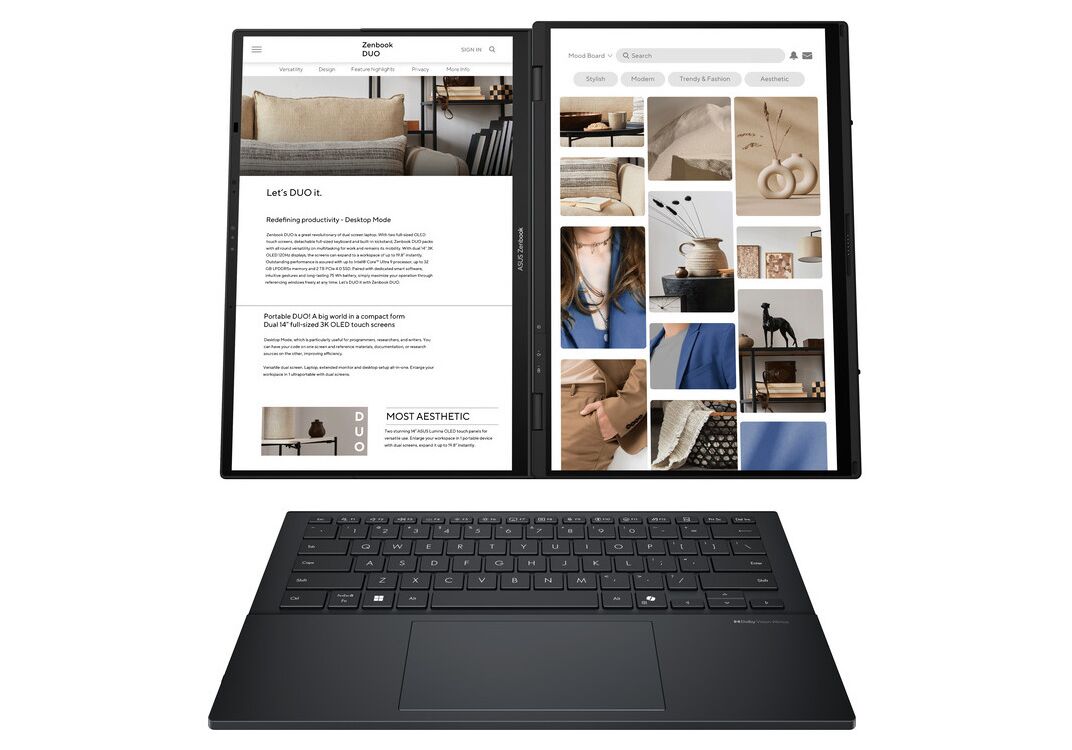 ASUS Laptop Zenbook Duo OLED UX8406CA-OLED-PZ068X 14.0'' 2880x1800 OLED Touch 120Hz U9 285H/32GB/2TB SSD NVMe PCIe 4.0/Win 11 Pro/2Y/Inkwell Gray