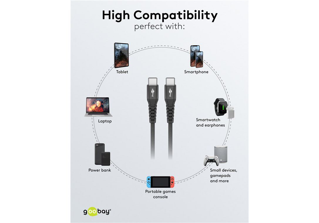 Καλώδιο φόρτισης και μεταφοράς δεδομένων USB-C σε USB-C της Goobay.