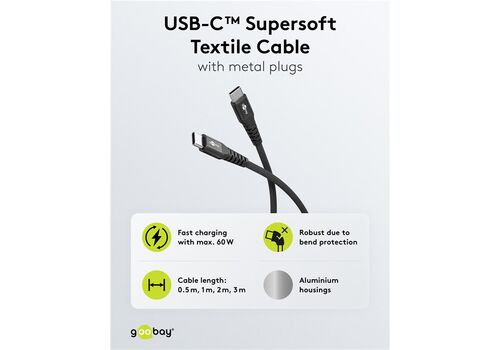 GOOBAY καλώδιο USB-C 73955, 60W, 480Mbps, 3m, μαύρο