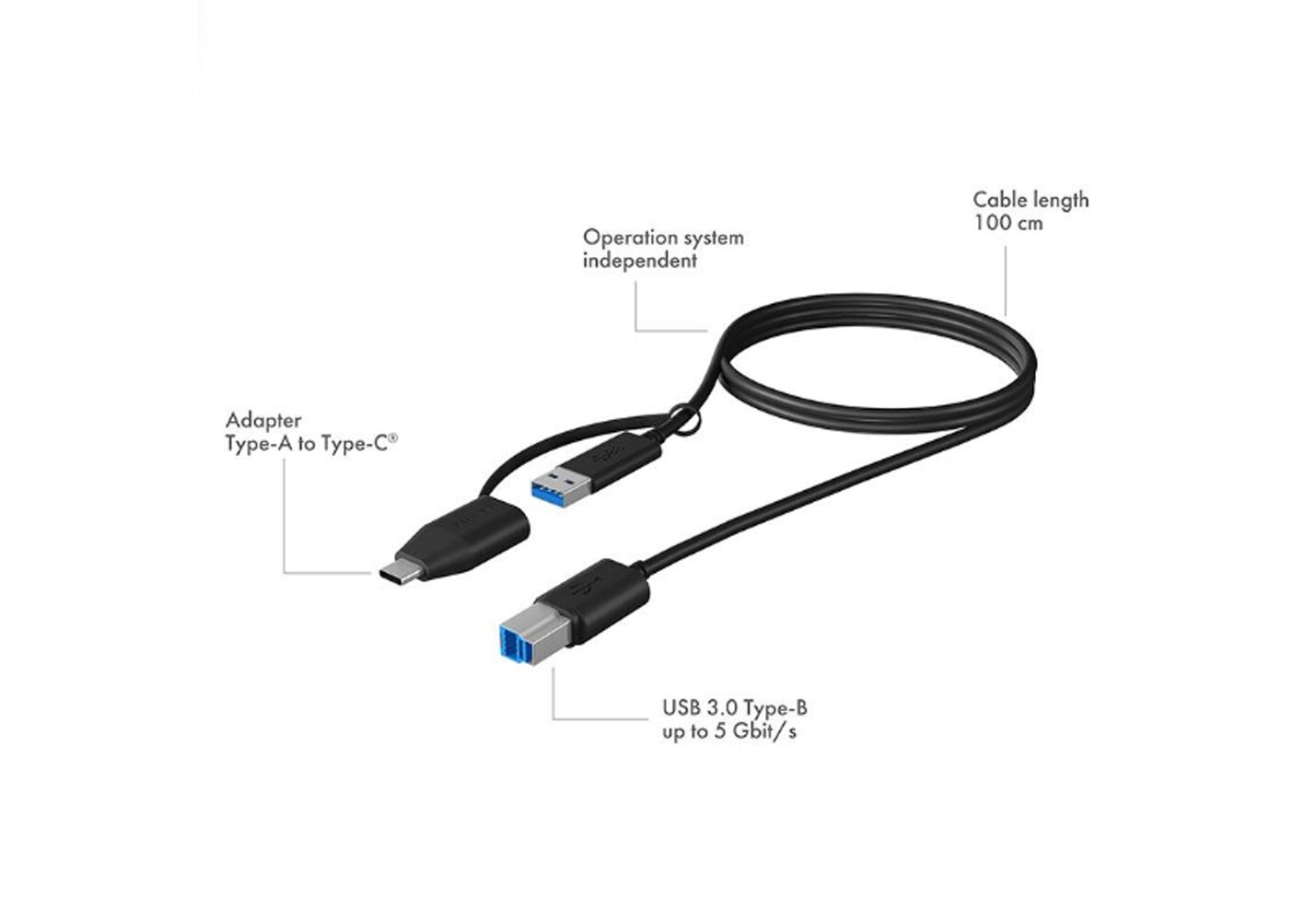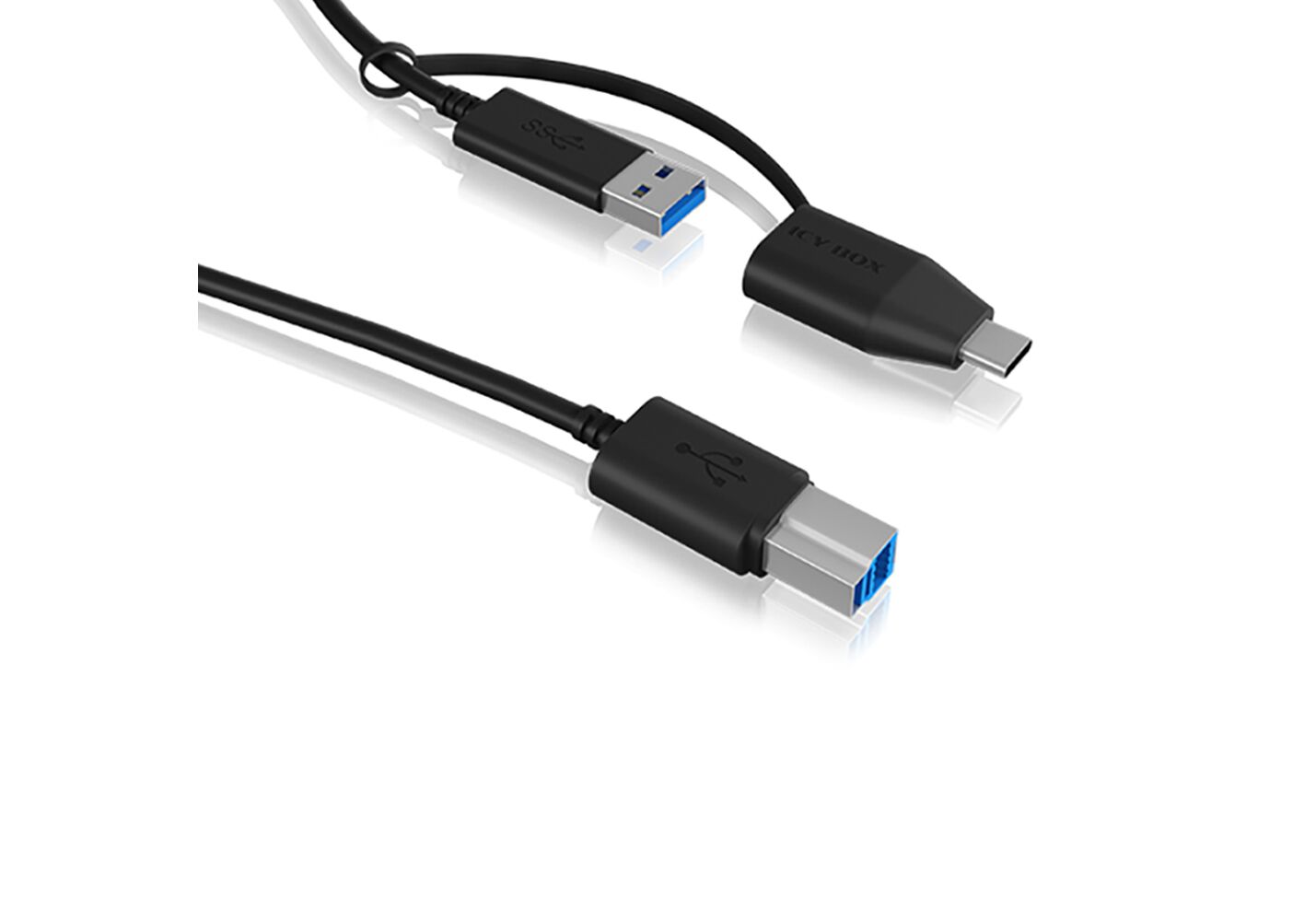 ICY BOX USB 3.2 Plug-B σε USB & Type-C Καλώδιο – 1 Μέτρο (Μαύρο)