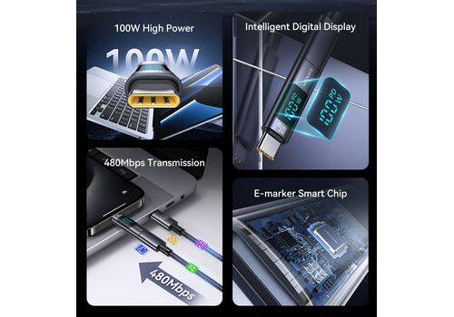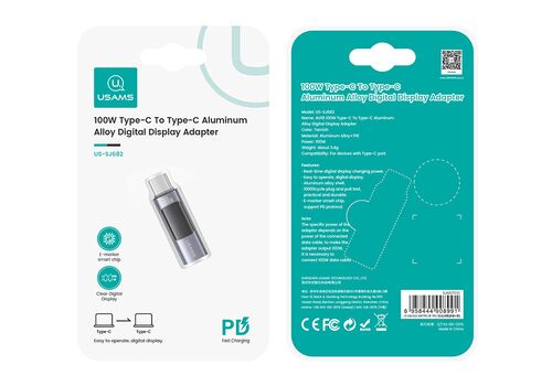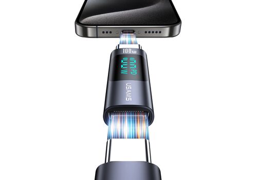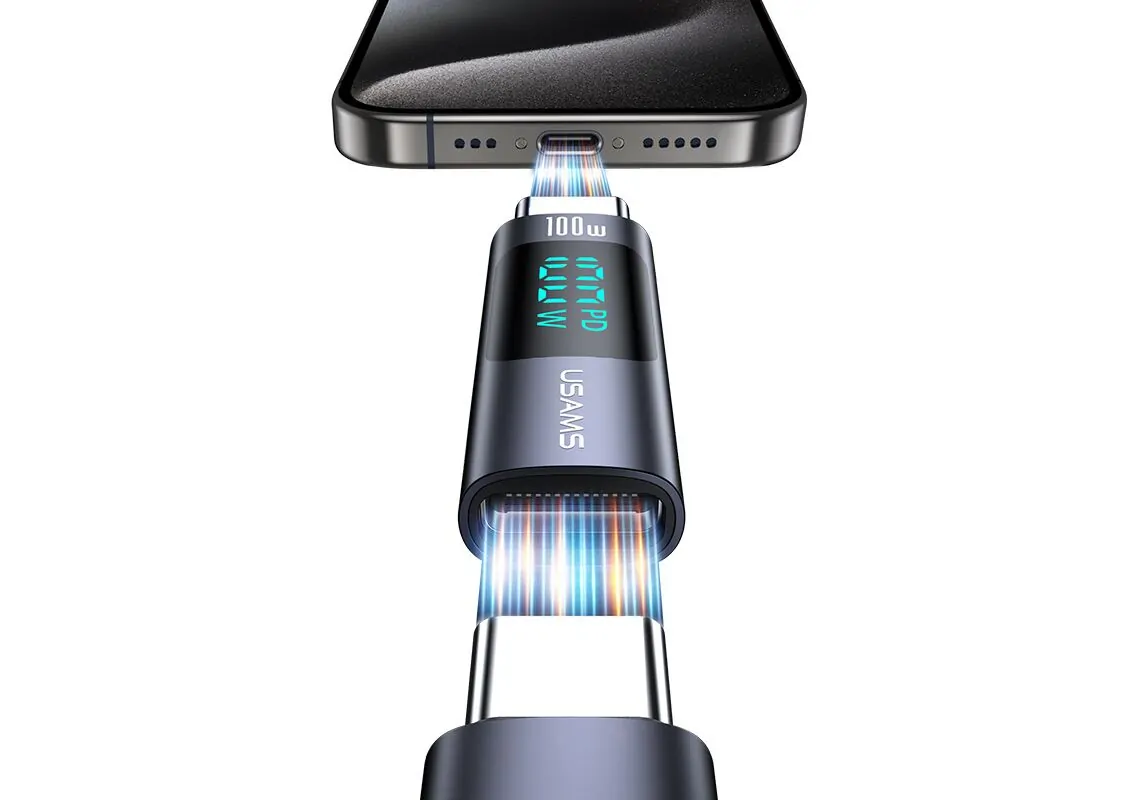 Aντάπτορας USB-C σε USB-C της Usams με οθόνη προβολής της απόδοσης φόρτισης σε πραγματικό χρόνο. Υποστηρίζει φόρτιση με απόδοση έως 100W.