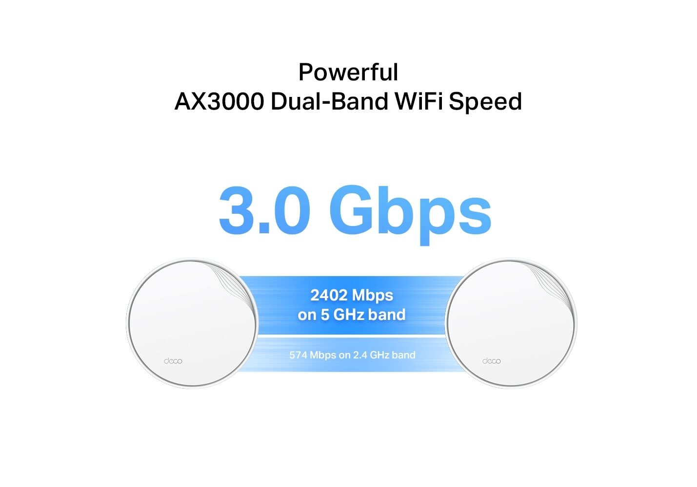 AX3000 Dual-Band WiFi – 2402 Mbps (5 GHz) + 574 Mbps (2.4 GHz).