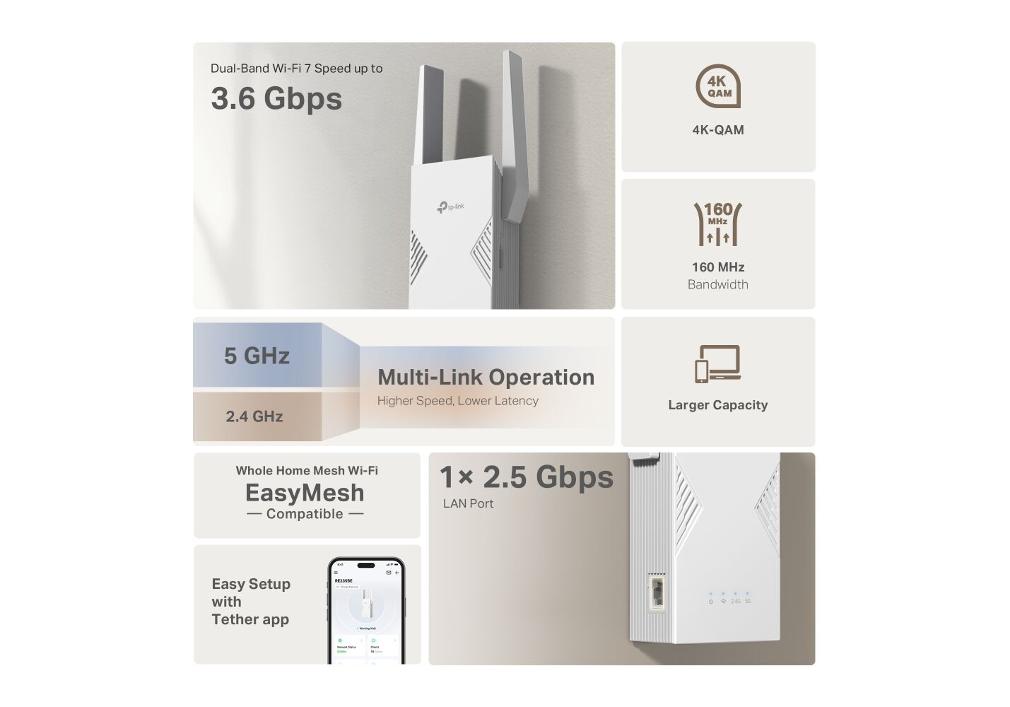 TP-LINK Range Extender RE235BE BE3600 Dual-Band Wi-Fi 7