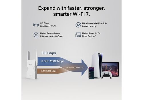 Lightning-Fast 3.6 Gbps Dual-Band Wi-Fi 7: 2882 Mbps (5 GHz) + 688 Mbps (2.4 GHz)