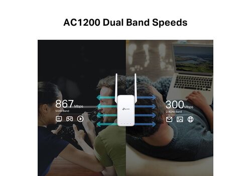 2.4 GHz (300 Mbps) and 5 GHz (867 Mbps) dual-band WiFi connection.