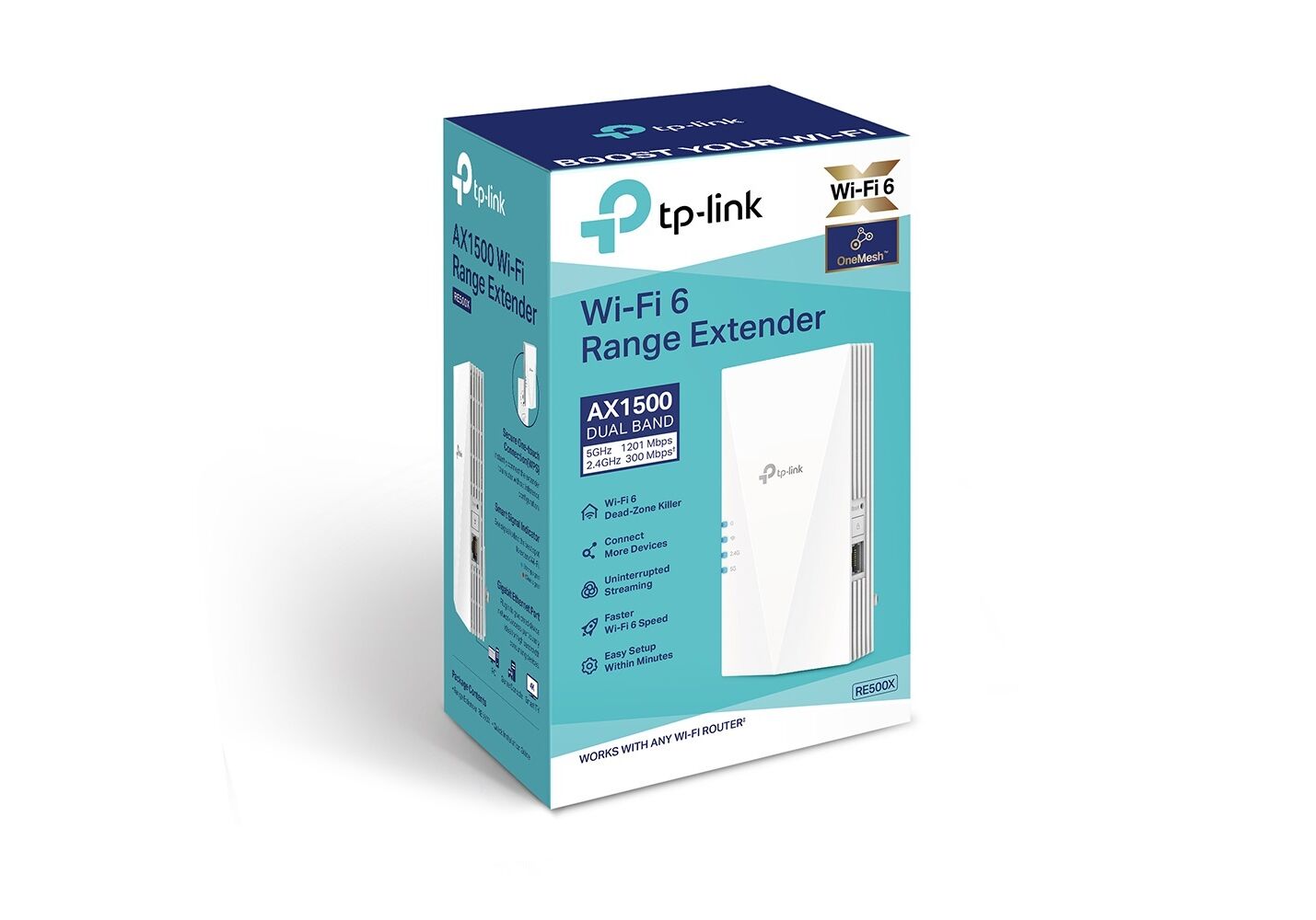 Το RE500X είναι εξοπλισμένο με την τελευταία ασύρματη τεχνολογία, Wi-Fi 6, για μεγαλύτερες ταχύτητες, μεγαλύτερη χωρητικότητα και μειωμένη συμφόρηση δικτύου.