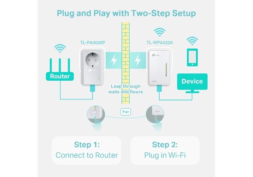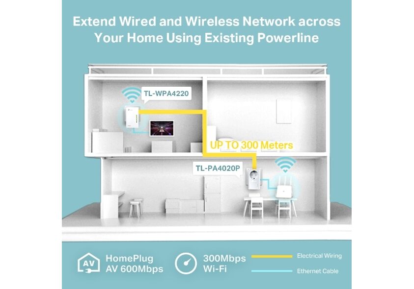 Το πρότυπο HomePlug AV2 παρέχει μετάδοση δεδομένων υψηλής ταχύτητας έως 600Mbps 1 μέσω της υπάρχουσας ηλεκτρικής καλωδίωσης ενός σπιτιού, ιδανική για ροή βίντεο HD ή 3D χωρίς καθυστέρηση και διαδικτυακό παιχνίδι