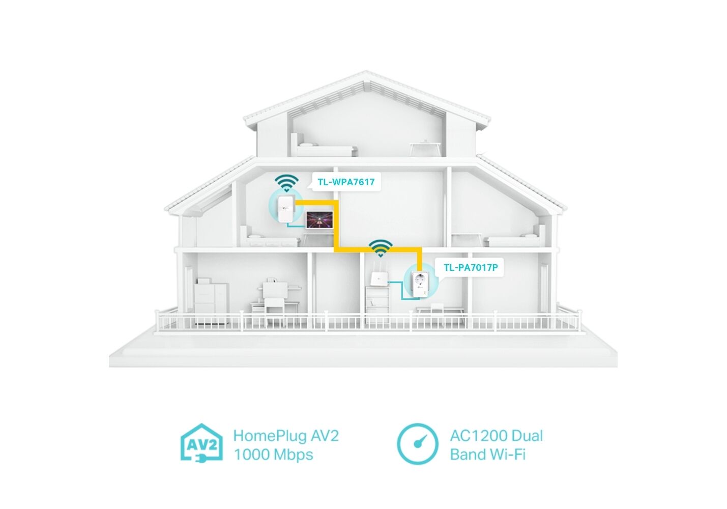 Gigabit Ethernet Port - Provide reliable high-speed wired connections for game consoles, smart TVs, and NAS Plug, Pair and Play - Quickly set up a secured Powerline network