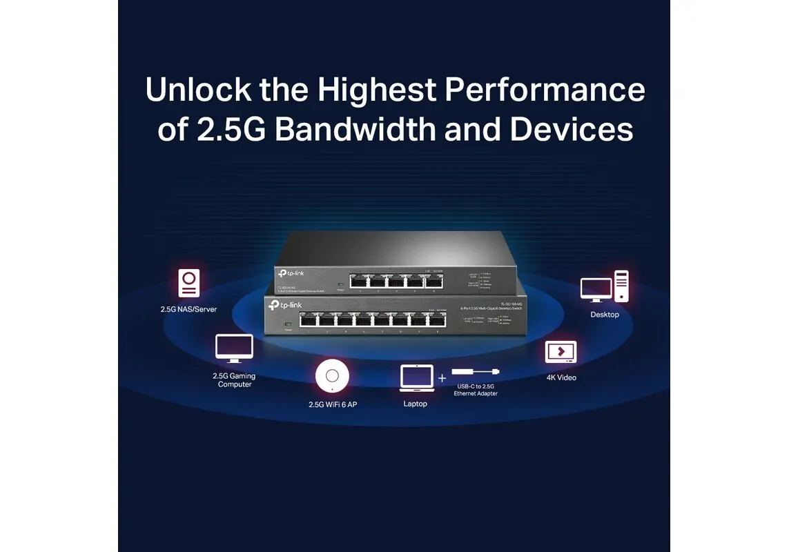 είναι ένα switch 8 θυρών 2.5-Gigabit, που προσφέρουν εξαιρετικά γρήγορες συνδέσεις με switching capacity έως και 40 Gbps.