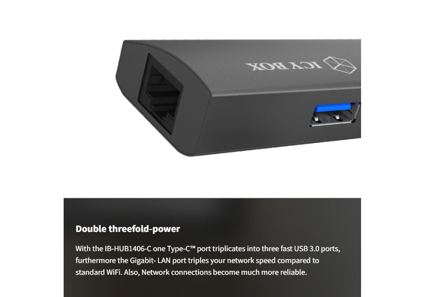 ICY BOX TYPE-C 3-PORT HUB WITH GIGABIT-LAN PORT