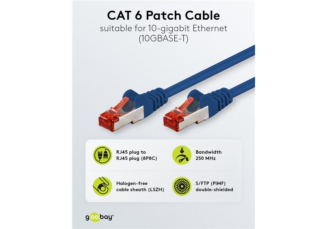 GOOBAY καλώδιο δικτύου 68268, CAT 6 S/FTP, copper, 250MHz, 2m, μπλε
