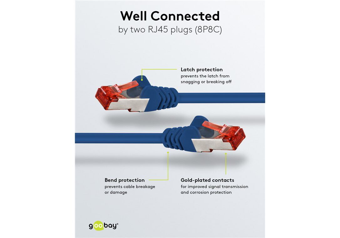 Τα καλώδια δικτύου της Goobay κατασκευάζονται από ποιοτικά υλικά, με τις υψηλότερες τεχνικές προδιαγραφές, προσφέροντας αξιόπιστη λειτουργία υψηλής απόδοσης, με αντοχή στον χρόνο.