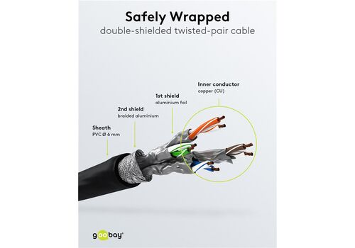 GOOBAY καλώδιο δικτύου 68696, CAT 6 S/FTP, copper, 250MHz, 2m, μαύρο