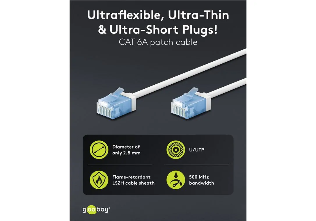 GOOBAY καλώδιο δικτύου 74287, CAT 6A U/UTP, slim, copper, 500MHz, 2m, λευκό
