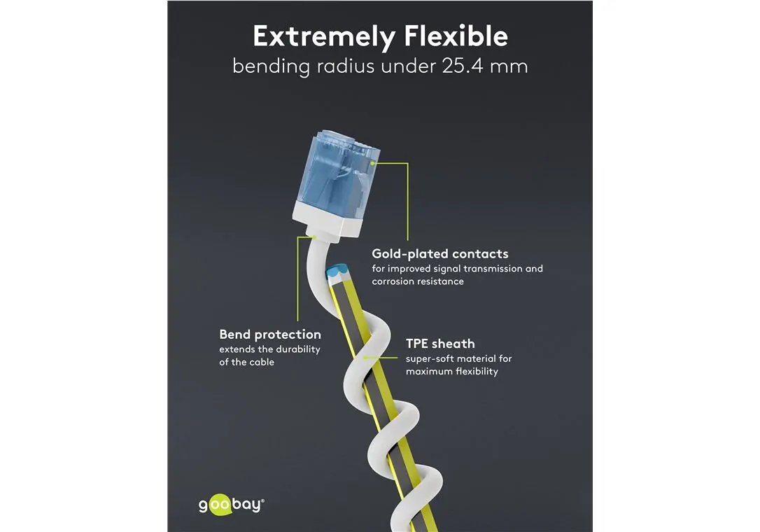 Τα καλώδια τις Goobay κατασκευάζονται με τις καλύτερες τεχνικές προδιαγραφές και τα καλύτερα υλικά κατασκευής για μεγάλη αντοχή, προσφέροντας αξιοπιστία και υψηλής ποιότητας απόδοση ώστε να εξασφαλίζουν την απροβλημάτιστη χρήση τους.