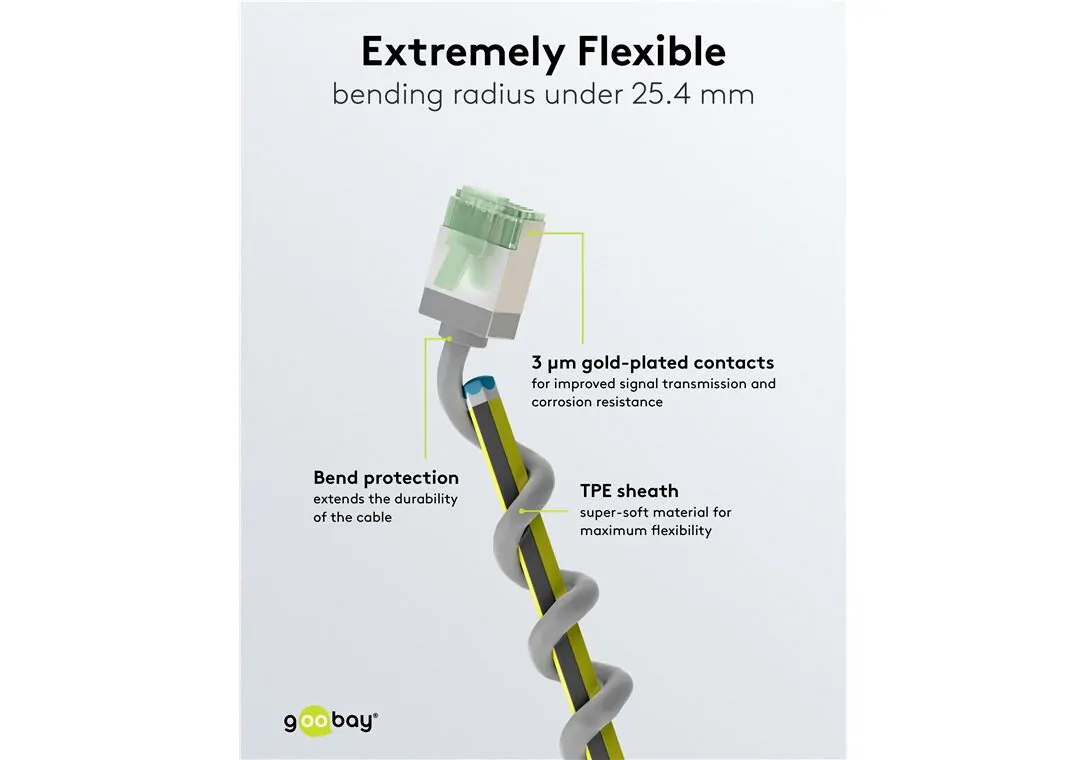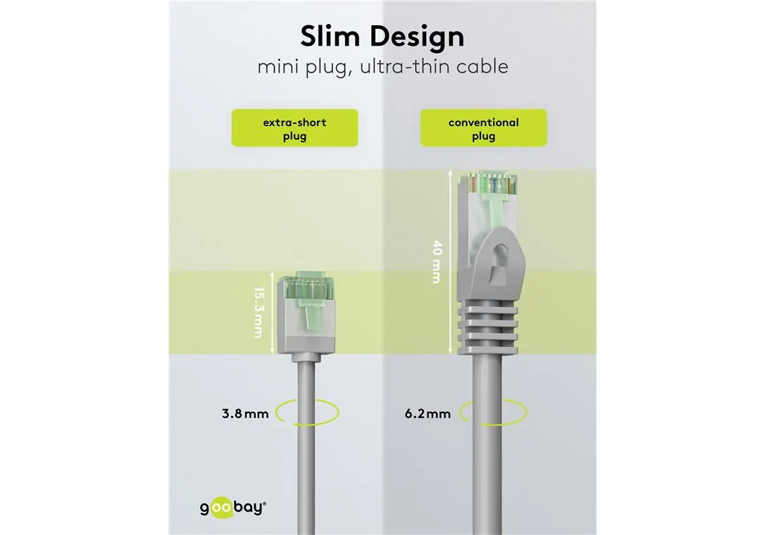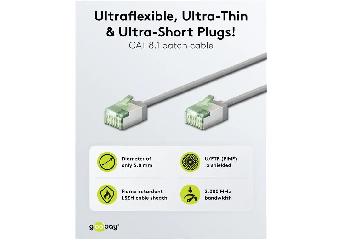 GOOBAY καλώδιο δικτύου 74343, CAT 8.1 U/FTP, slim, copper, 2000MHz, 0.15m, γκρι