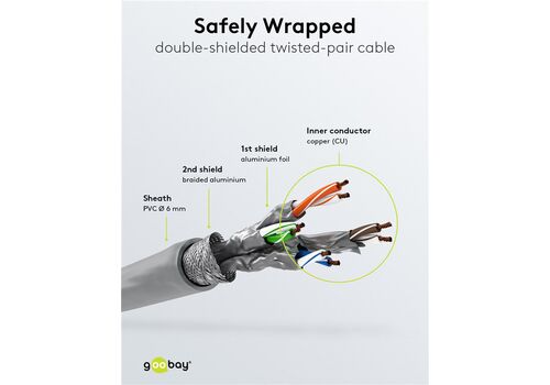GOOBAY καλώδιο δικτύου 95579, CAT 6 S/FTP, copper, 250MHz, 1.5m, γκρι