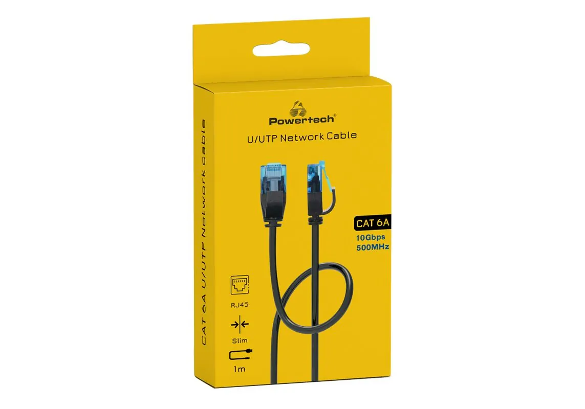 POWERTECH καλώδιο δικτύου PTR-0142 Cat 6a U/UTP, copper, slim, 1m, μαύρο