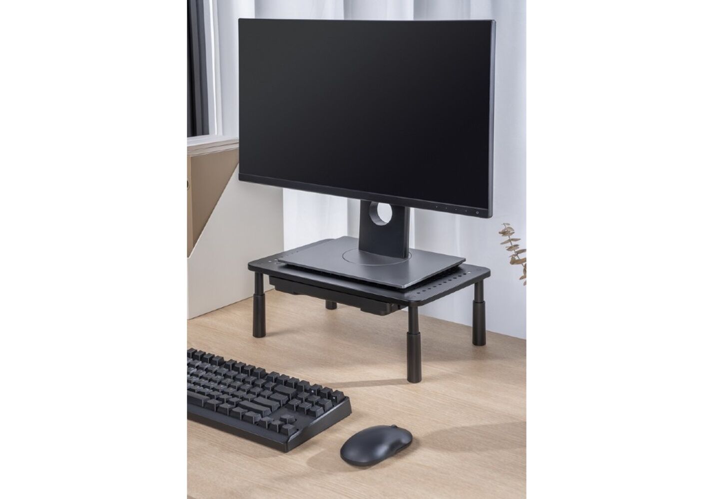 Η GEMBIRD Adjustable Monitor Stand with Drawer είναι η τέλεια επιλογή για όσους θέλουν να συνδυάσουν εργονομία, πρακτικότητα και κομψότητα στον χώρο εργασίας τους.