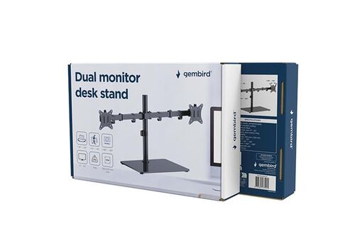 Η GEMBIRD Επιτραπέζια Βάση Διπλής Οθόνης είναι ιδανική για επαγγελματικούς χώρους, γραφεία ή gaming setups, προσφέροντας μέγιστη ευελιξία, άψογη εργονομία και κομψή εμφάνιση σε κάθε σταθμό εργασίας.