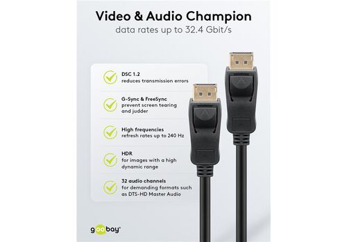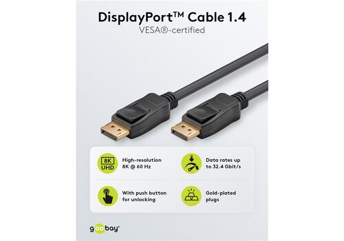 GOOBAY καλώδιο DisplayPort 74778, VESA Certified, 8K/60Hz, 32.4 Gbps, 2m, μαύρο