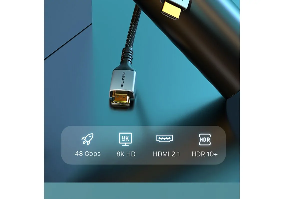 CABLETIME καλώδιο HDMI 2.1 CT-HM8K, 8K/60Hz, 48Gbps, 28AWG, 1m, μαύρο