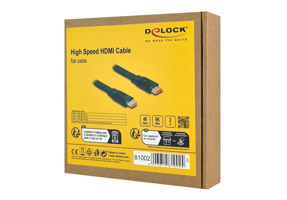 DELOCK καλώδιο HDMI 81002, flat, 8K/60Hz, 48 Gbps, eARC, HDR, 2m, μαύρο
