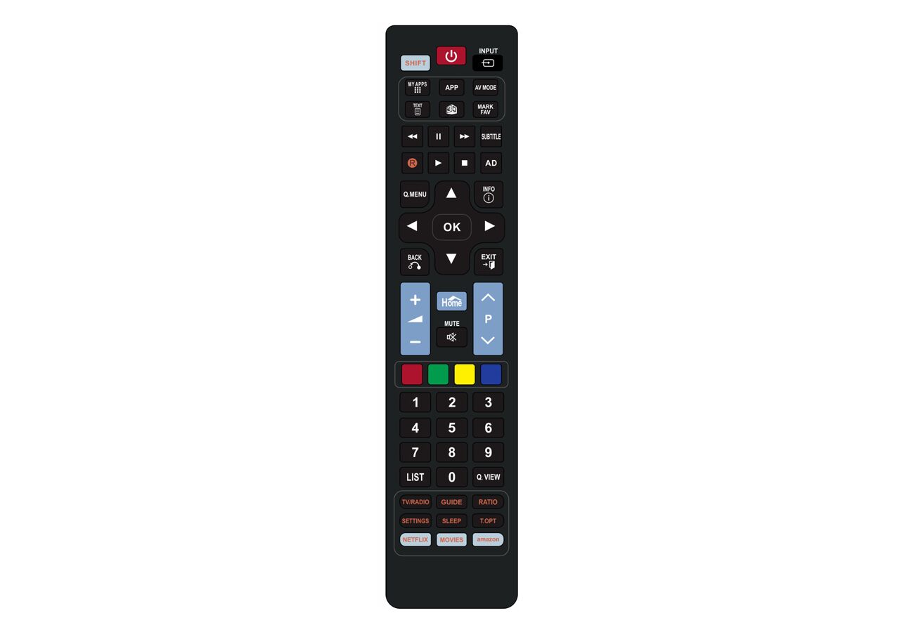 Εργονομικό χειριστήριο τηλεόρασης το οποίο υποστηρίζει όλες τις λειτουργίες της τηλεόρασης, συμπεριλαμβανομένου και του teletext. Επιπρόσθετα, εξοπλίζεται με dedicated πλήκτρα για εφαρμογές των smart TVs.