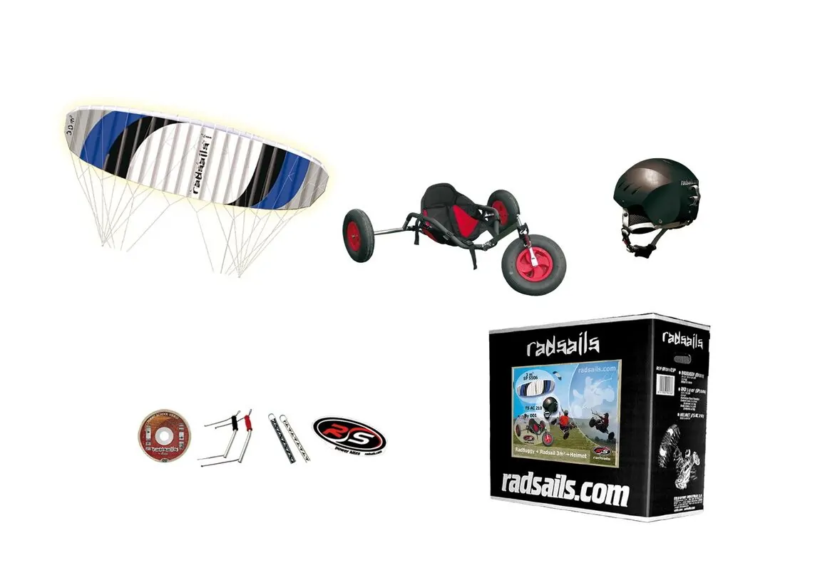 Το πακέτο περιέχει radbuggy, radsails και κράνος, των οποίων τα χαρακτηριστικά αναγράφονται παρακάτω.