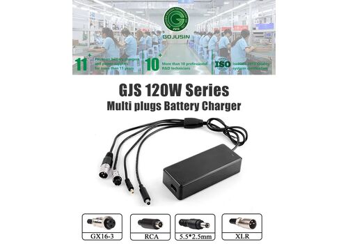Ο φορτιστής διαθέτει στην έξοδο πολλαπλά βύσματα φόρτισης ( DC connector, GX16-3, XLR-3 and RCA connectors) προσφέροντας σας την δυνατότητα να φορτίζετε διαφορετικά μοντέλα ηλεκτρικών οχημάτων.