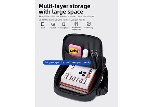 GOLDEN WOLF τσάντα ώμου GKB00732 με θήκη tablet, 3L, μαύρη
