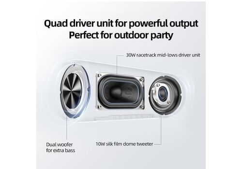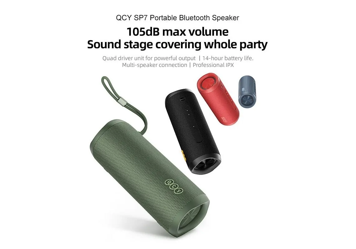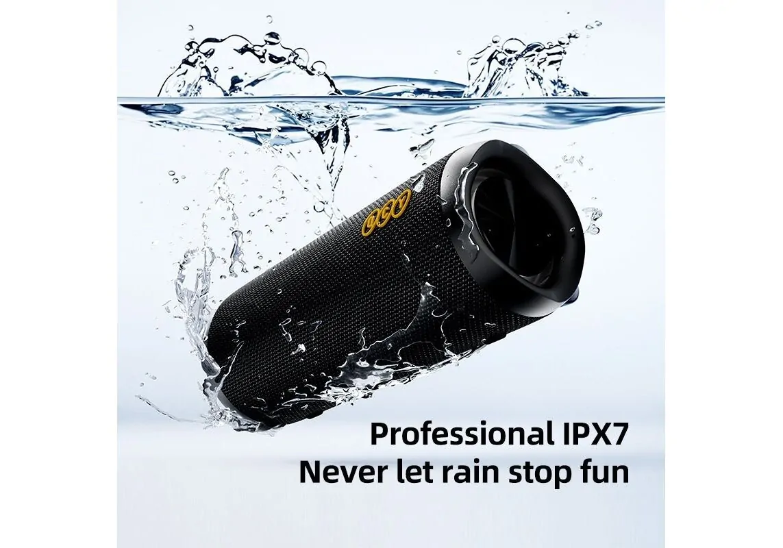 QCY SP7 Black - Portable Bluetooth Speaker w Stereo Sound 40W, Mic for Calls, RGB Light Show